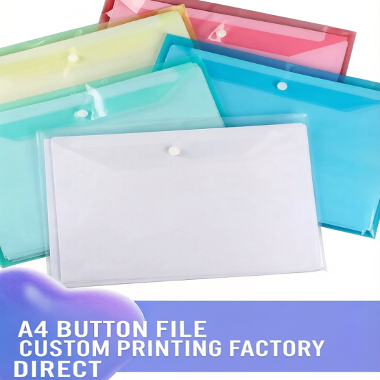 Colorful Snap Button A4 PP Plastic Pocket File Folder School Office Binder Holder for Organizing Printer Paper & Documents