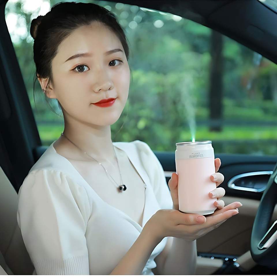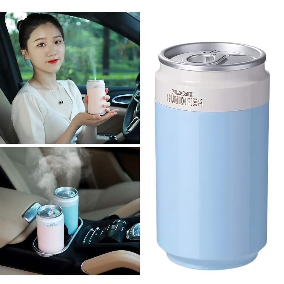 Colorful Soda Can Design Humidifier with LED Flame Mist, USB Powered, Quiet Ultrasonic for Home, Office & Outdoor Use