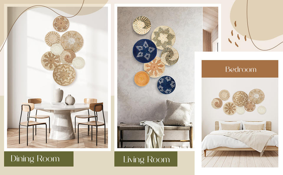 Colorful Straw Woven Plates Seagrass Wall Hangings Baskets Decorations Wicker Items Handmade Products for Home Boho Arts Bamboo
