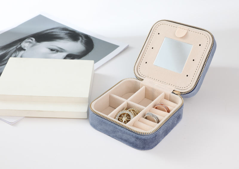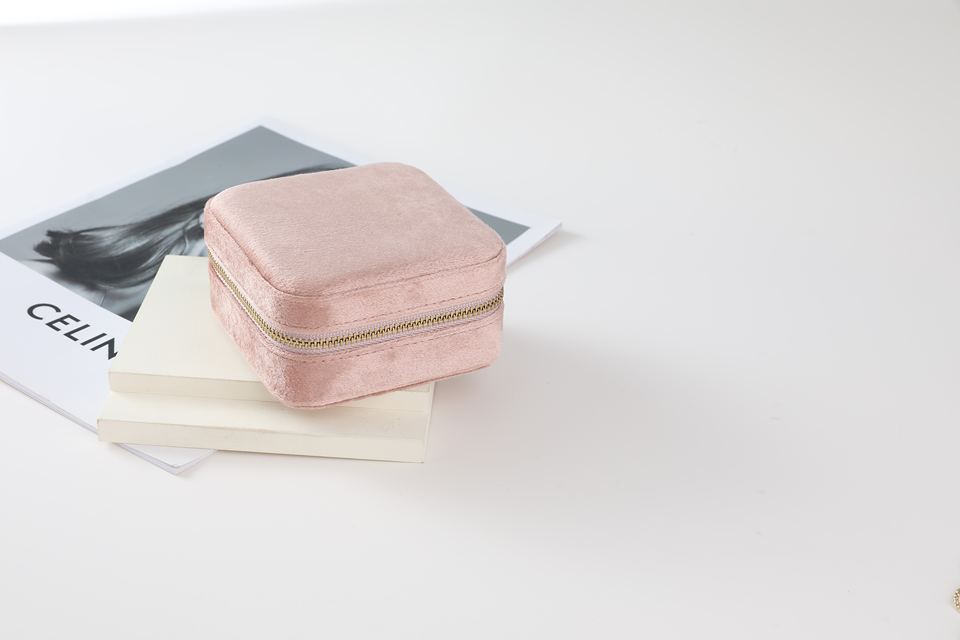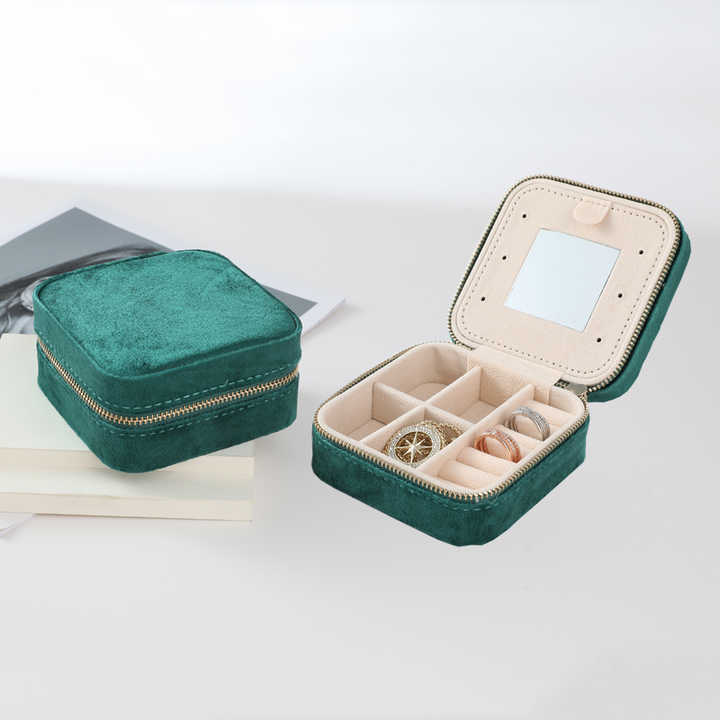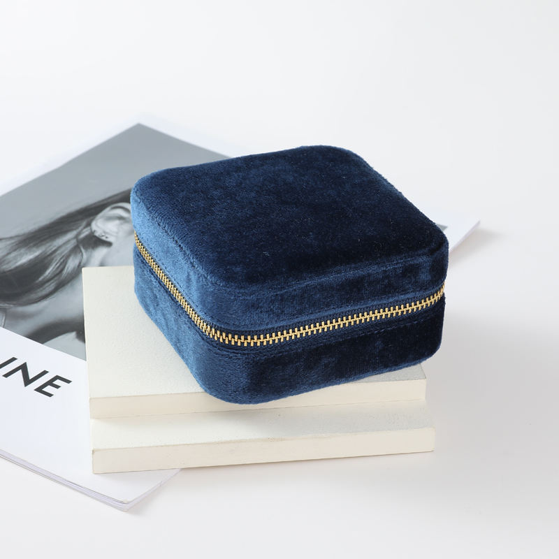 Colorful Velvet Jewelry Storage Box Zipper Portable Travel Case Multi Compartment Organizer for Women