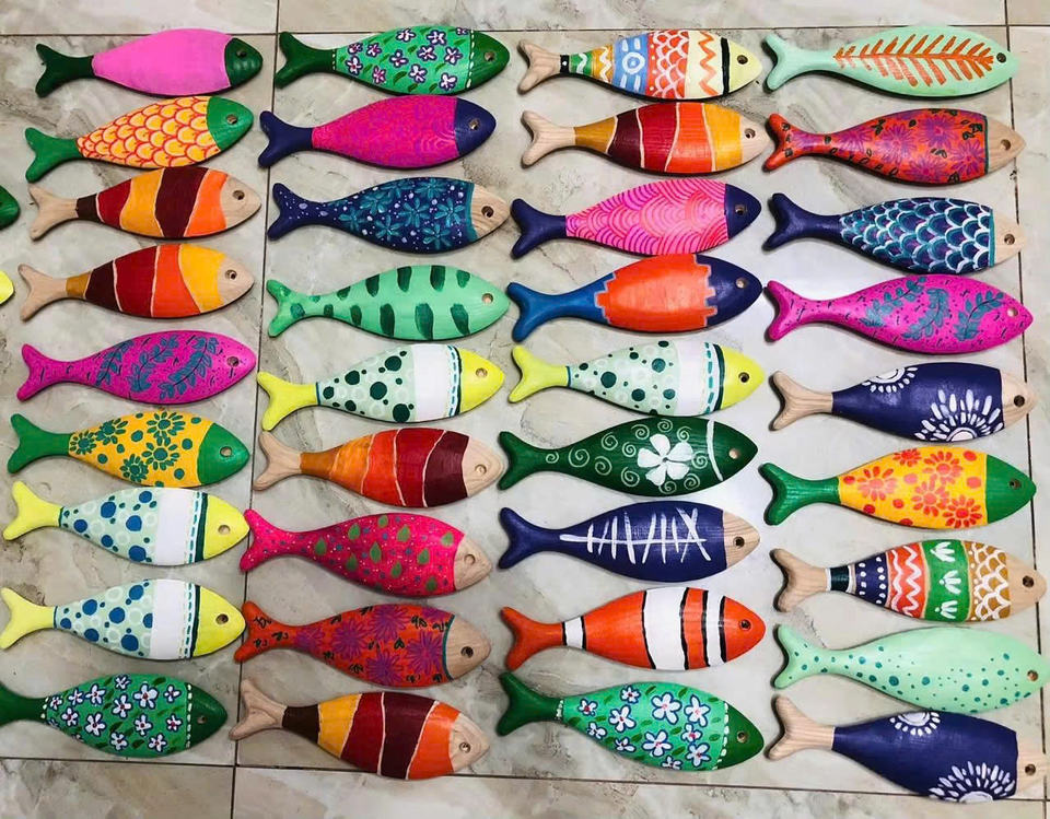 Colorful Wooden Fish Decor For Seaside Cottage Ocean Theme Restaurant And Resort Decoration Handcrafted From Natural Wood