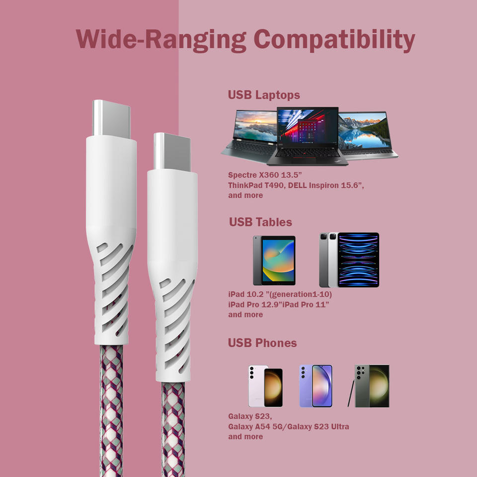 Colorful 60W USB-C to USB-C Fast Charging Cable Nylon Diamond Jacket with PVC Housing Braid Shielding for Computer & iOS Stock!