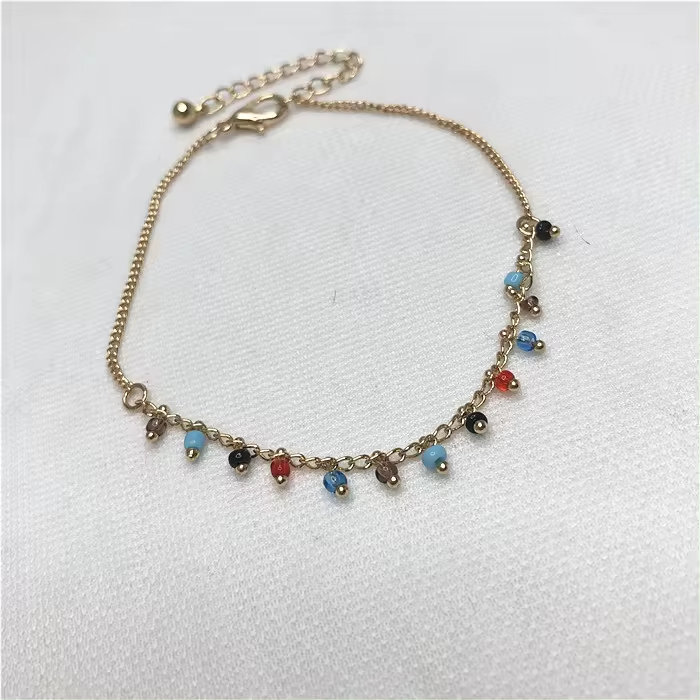 Colorful gold-plated bead pendant charm bracelet with adjustable minimalist style, suitable for parties and gift occasions