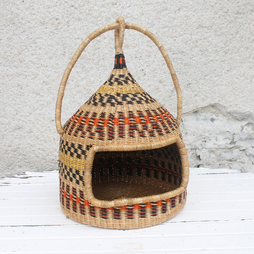 Colorful hand weave seagrass cat cage bed high quality raffia cats house sea grass kitten cages
