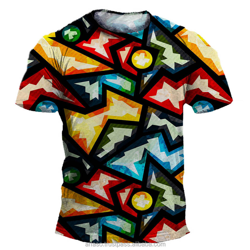 Casual comfortable men's short sleeved O-neck quick drying sportswearColorful non-standard color block graphic unisex T-shirts