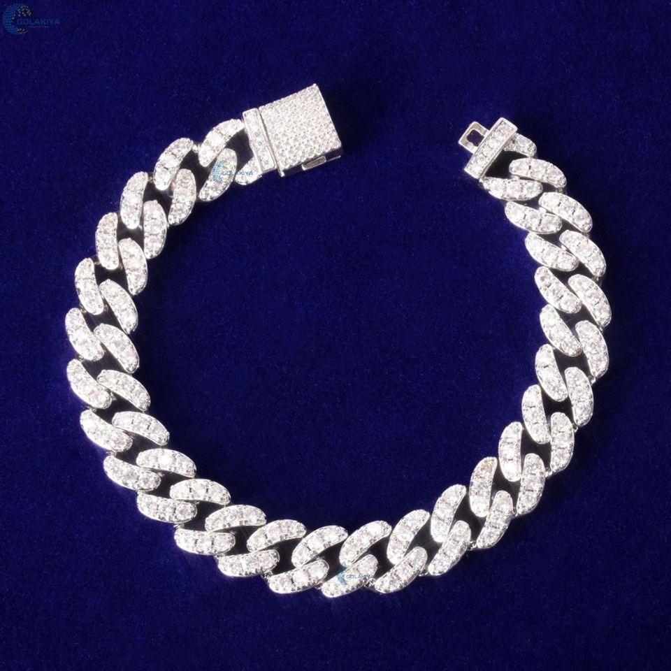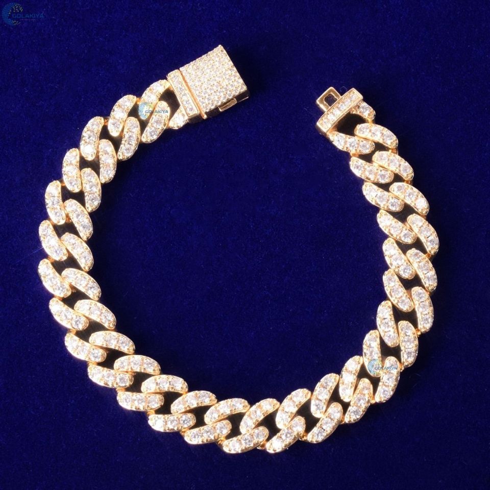 Colorless Lab Grown Diamond Cuban Link Bracelet Full Iced Out Celebrity Style Hip Hop Bracelet