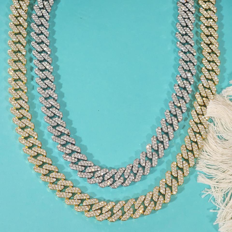 Colorless Two Row Moissanite Diamond Iced Out Hip Hop Cuban Link Chain In 925 Silver Bling Pendant Necklace For Rappers Fashion
