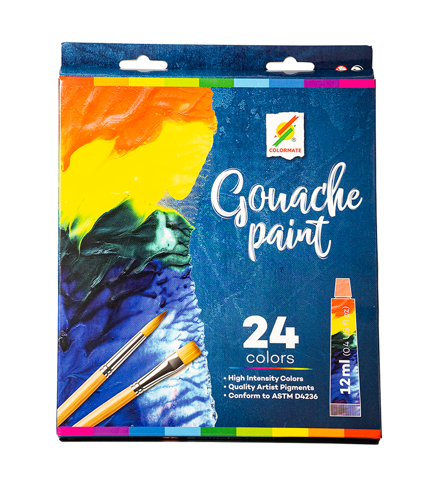 Colormate Friend Top Sale 24-Color 12ml High Quality Non-Toxic Artists Gouache Pigments Paper for Students Canvas