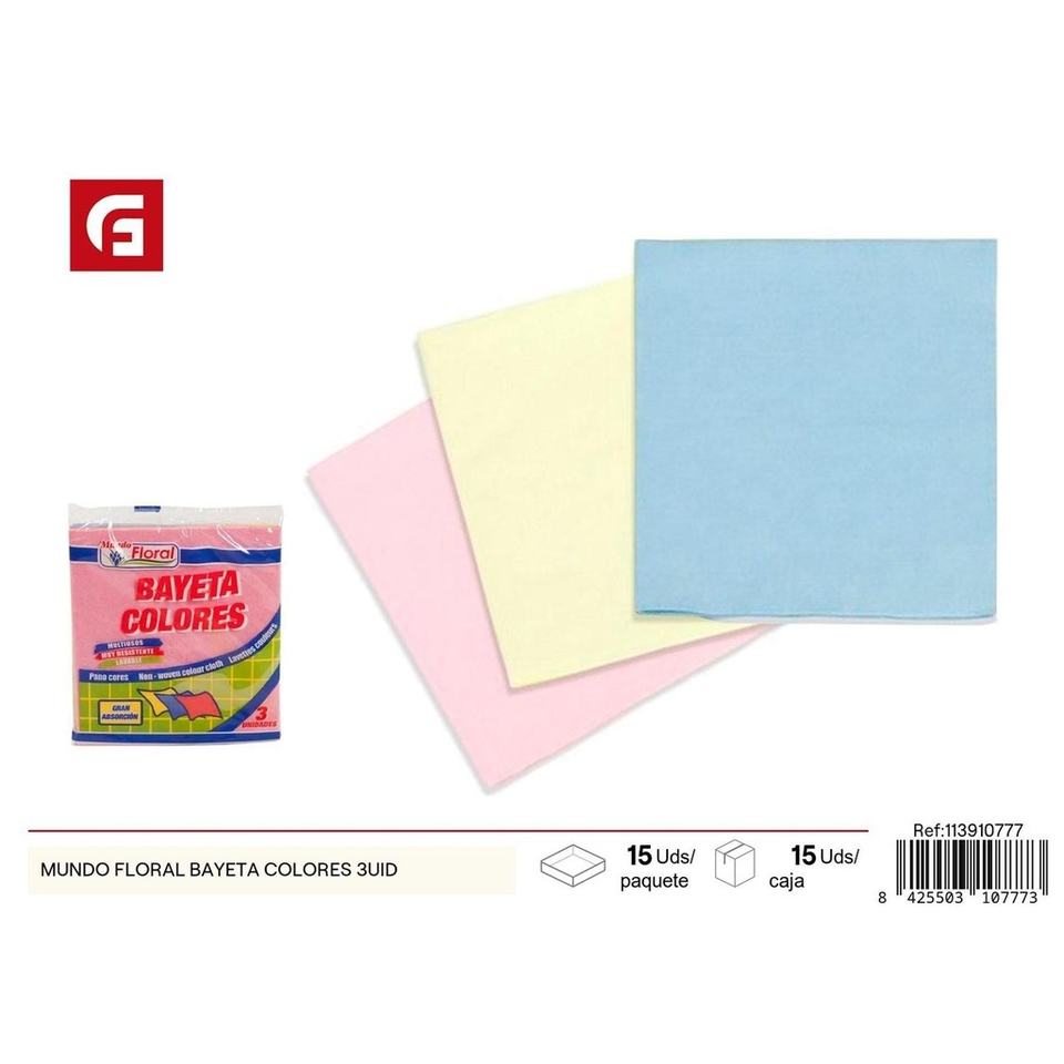 Coloured cloths (3 pieces, FLORAL WORLD) - Cleaning accessories