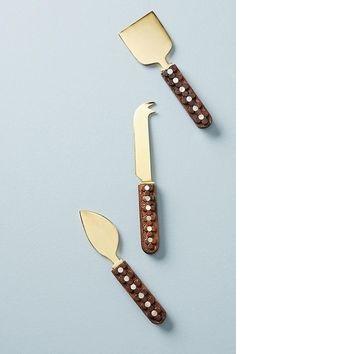 Colourful Handcrafted 3pc Stainless Steel Slicer Cheese Knives Set with Marble and Wood Handle for Serving Cheese Breakfast