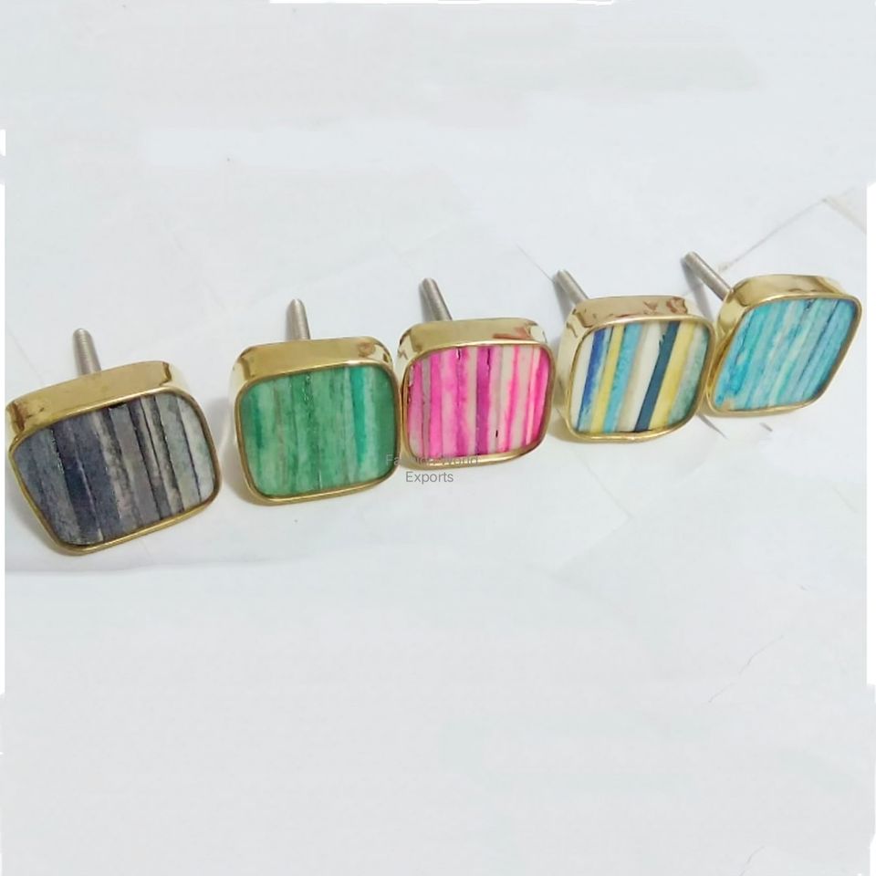 Colourful Multi Square Bone Door Knob Cabinet Drawer Pull Handles with Brass Frame Hardware Kitchen Furniture Handles & Knobs