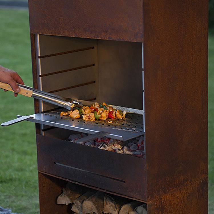 Column Corten Steel Wood-Burning Fireplace Three-Layer Structure Ash Collection Device Freestanding for Outdoor Hotel Villa