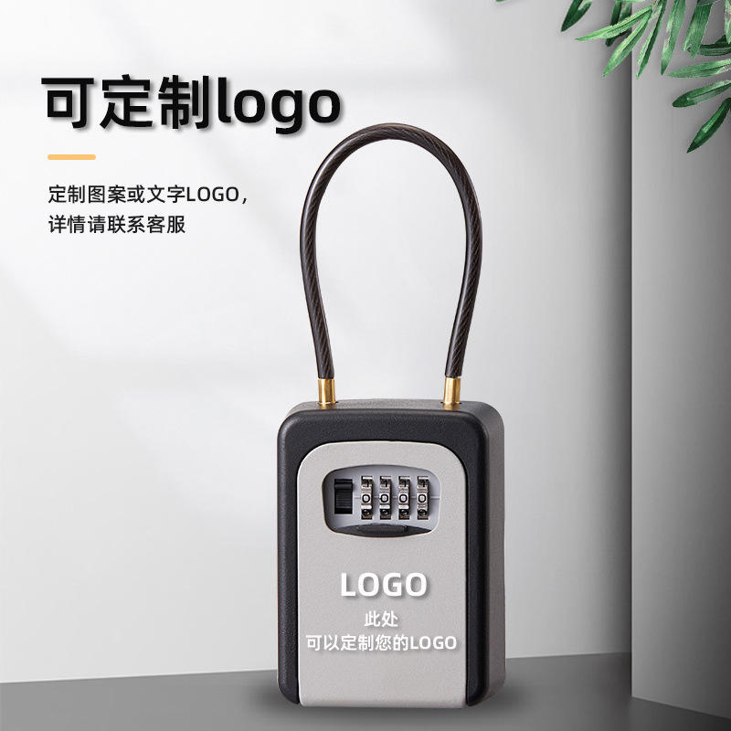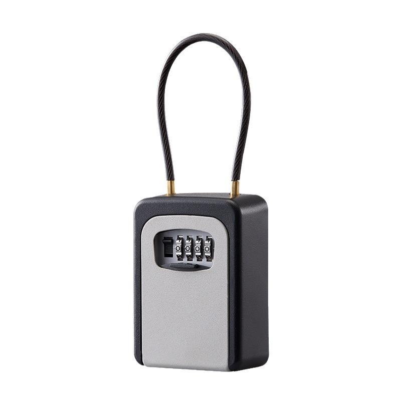 Combination Pad Lock Key Box Zinc Alloy Rectangular Black Gray Steel Cable 7mm Office Renovation Leasing Use