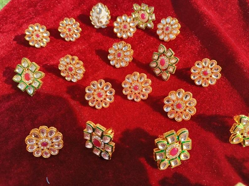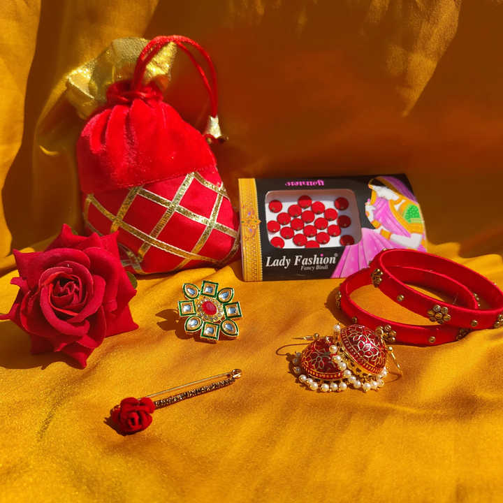 Combo of 7 Wedding Favor Wholesale Party Return Gift Potli Bag Bangle Hair Pins Cloth Pin Bindi Kundan Ring Earrings Giveaways