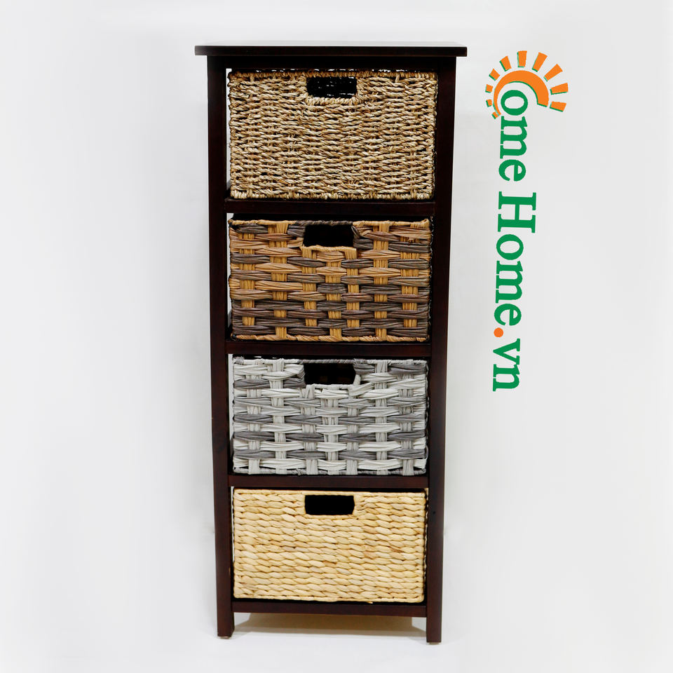 Product name:4 tier wood cabinet in brown color, with 4 baskets