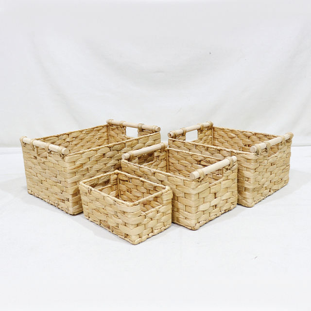 Comehome Water Hyacinth Storage Basket Set Woven Organizer With Wooden Handles