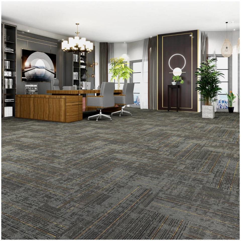 Comercial Use Office Carpet Tiles Easy to Install Rug Pvc Backing Stripe Grey Hotel Corridor Square Carpet Tiles