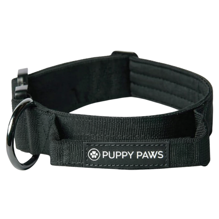 Comfort Control Dog Collar Black Padded Adjustable Heavy Duty Nylon Training Walking Collar with Handle