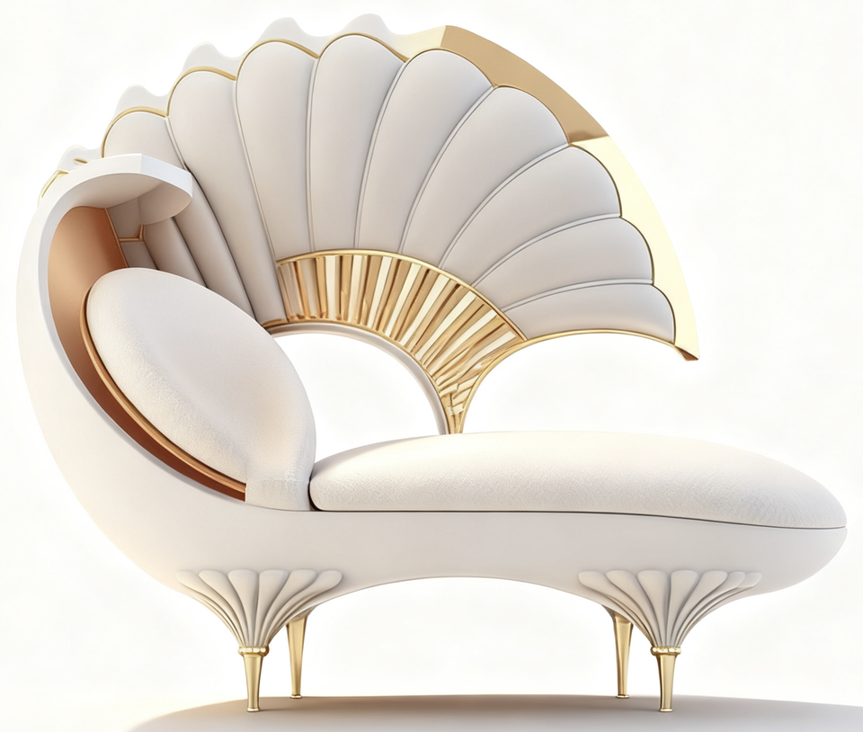 Sturdy metal base, thick tufted seat cushion, curved ergonomic shape, retro-modern look, comfortable lounging