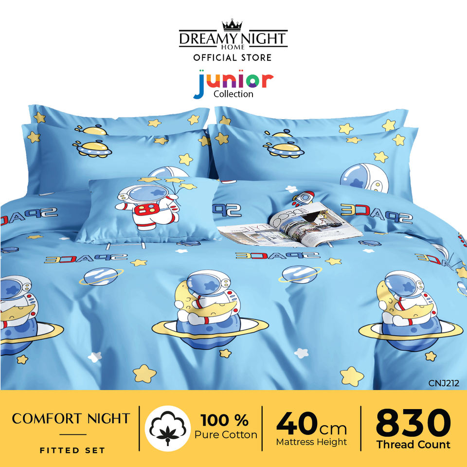Comfort Night Junior 100% Pure Cotton Cartoon Printed Super Single Fitted Sheet Set 830TC 40cm Deep Pocket
