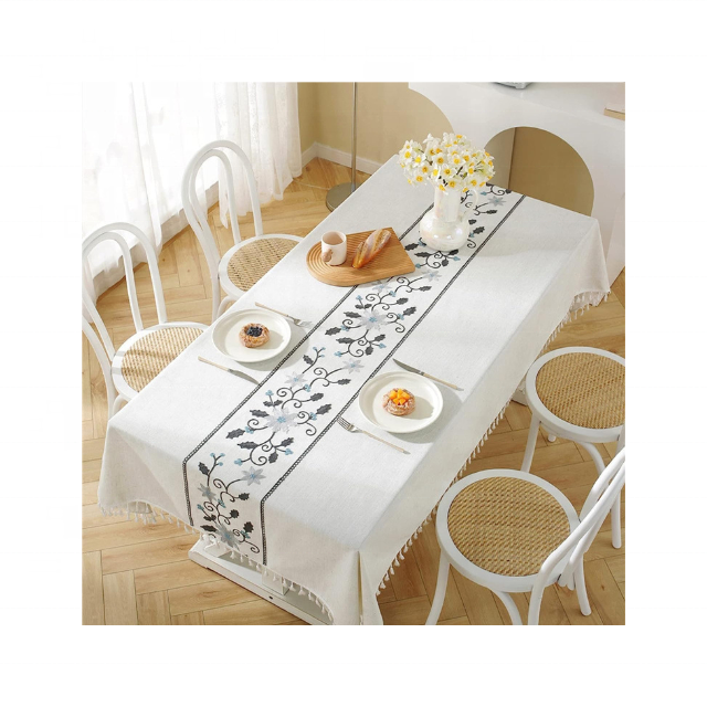 Comfortable 70x90 Inches Yellow Eco-Friendly Floral Embroidered Tablecloth Machine Washable Great for Everyday Dining With Style