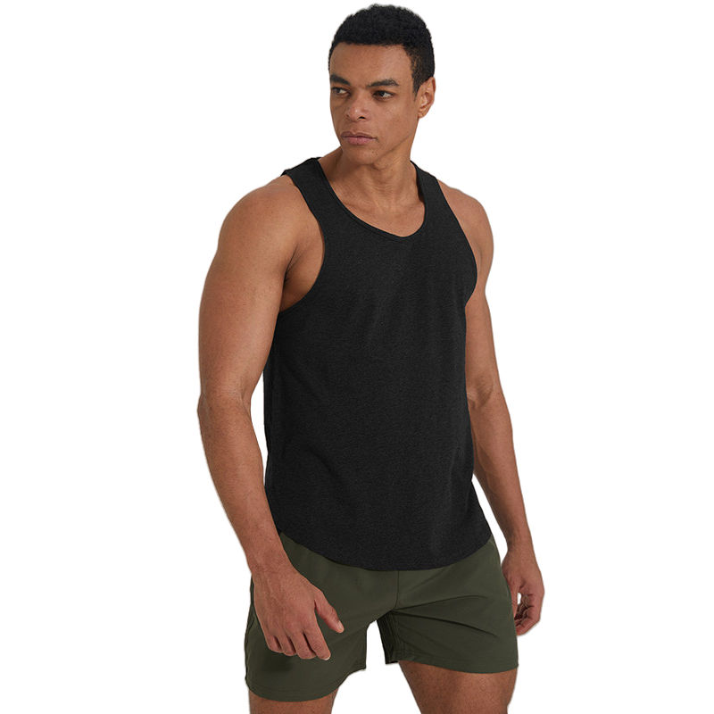 Comfortable Cotton Outwork Singlets Round Hem Slide Slits Tank Top Running Training Gym Wear