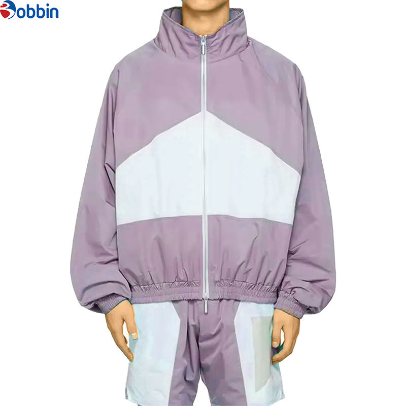Comfortable Custom Logo Reflective Patchwork Zip up Jacket Nylon Sports Shorts Sets Tracksuits Unisex Men Windbreaker Short Sets