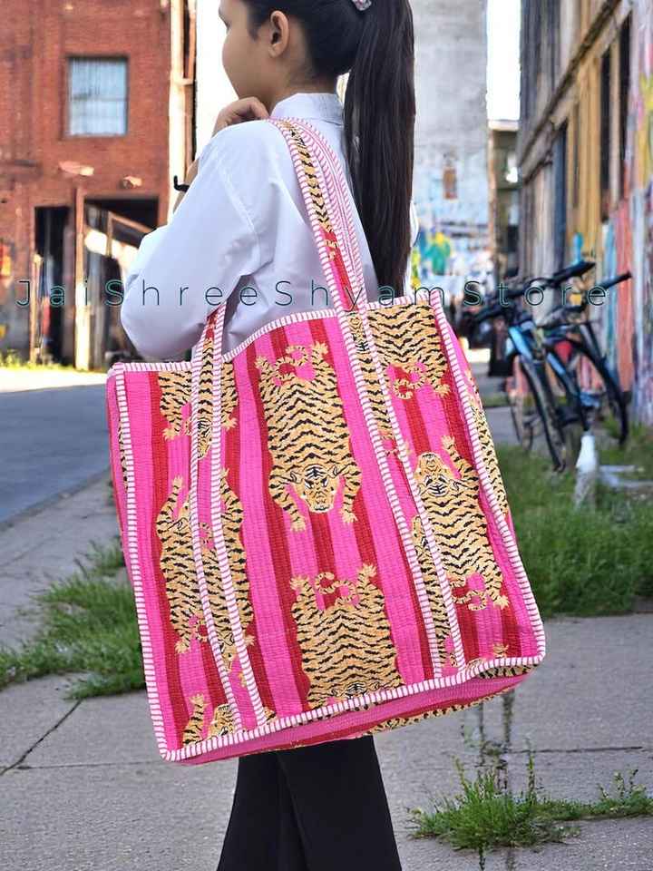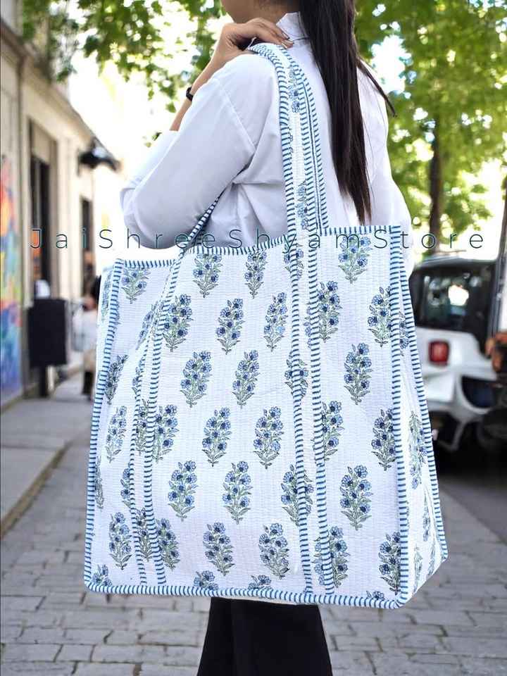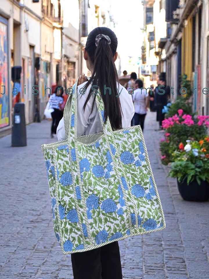 Comfortable Everyday Quilted Cotton Tote Bag With Timeless Floral Hand Block Design And Spacious Interior For Daily Essentials
