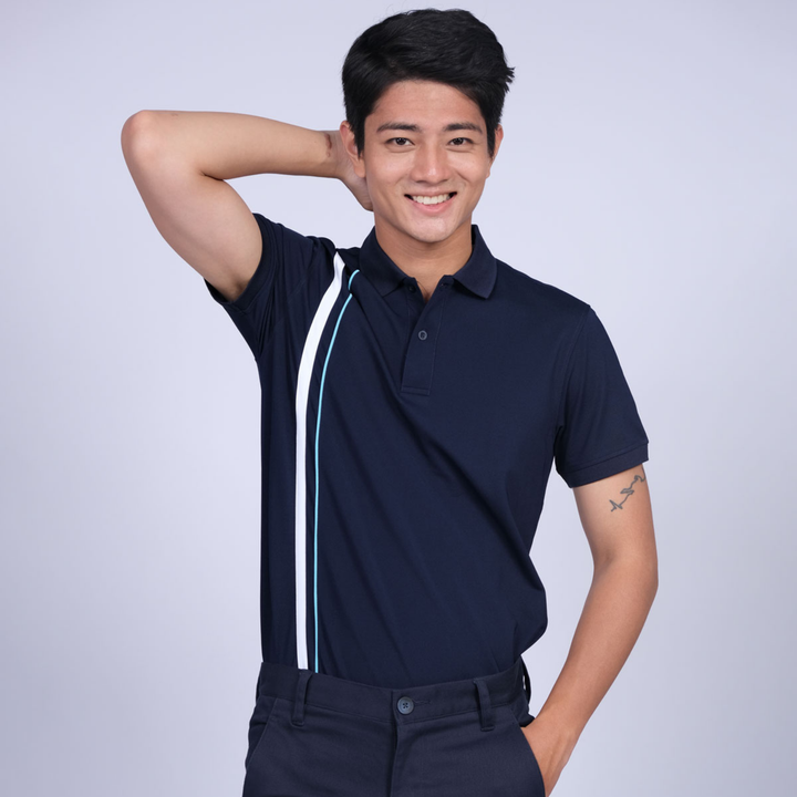 Product Name:Polo Shirt with Contrast Corded Piping Lines Down Front