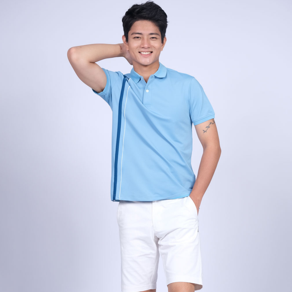 Product Name:Polo Shirt with Contrast Corded Piping Lines Down Front