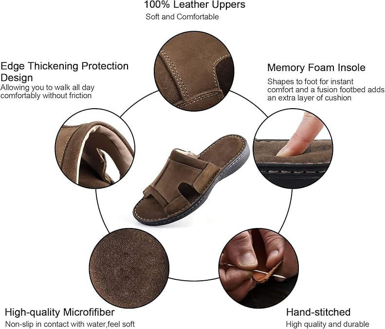 Genuine Leather Men's Slides