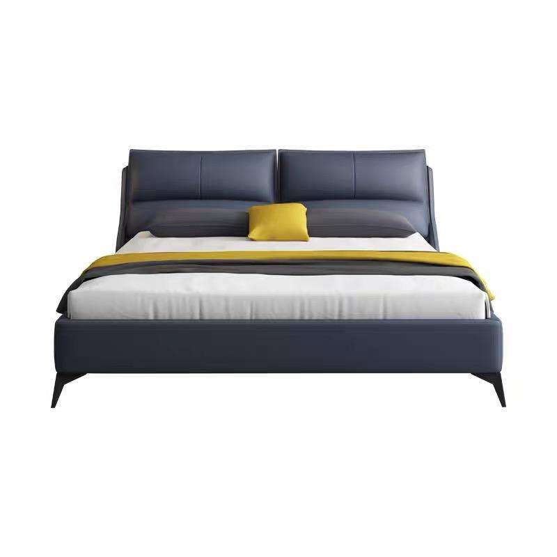 Comfortable Light Luxury Solid Wood Double Bed Luxury Leather King Bed Cushioned Backrest Bedroom Furniture Set