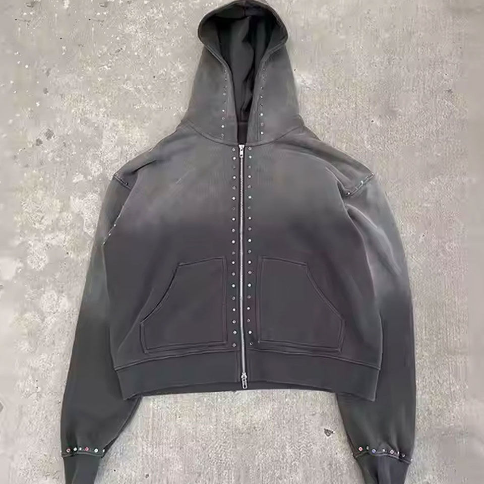 Comfortable Lightweight Hooded Casual Rhinestone Tracksuits for Men Running Wear Custom Made Regular Fit Drawstring Closure