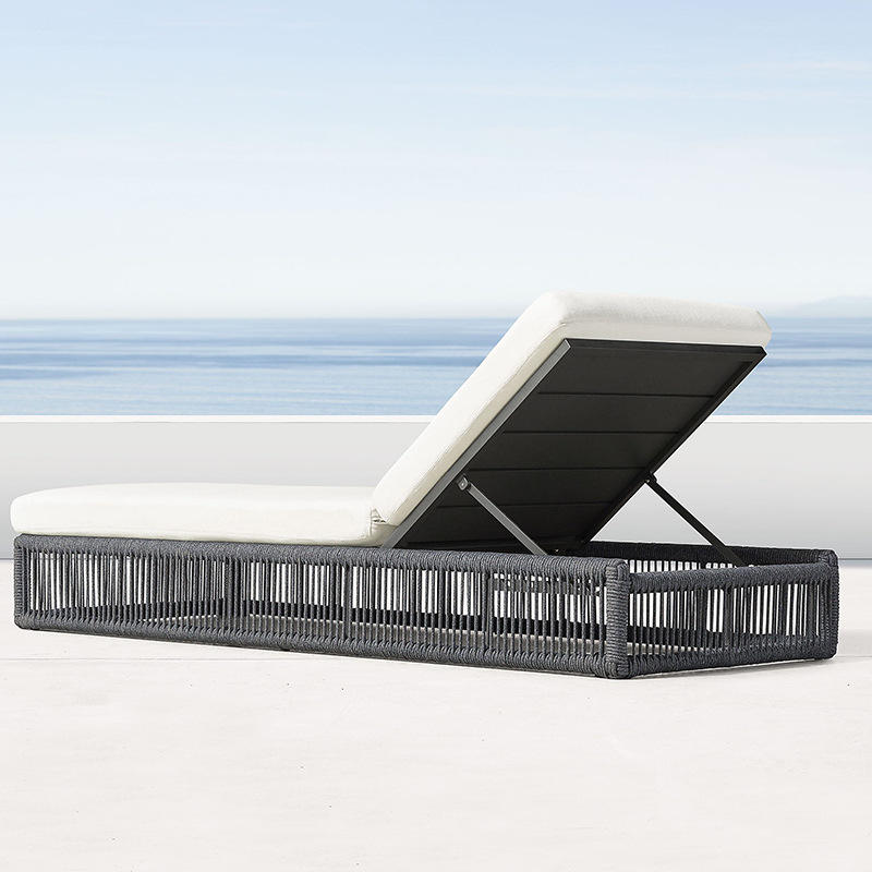 Comfortable Outdoor Sun Lounge Chair Teak Wood with Rope Cushion Rattan Material Garden Hotel Dining Outdoor Furniture