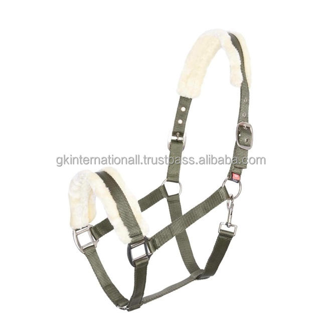 Comfortable Soft Faux Fur padding Nylon Horse Halter in Vibrant colors and custom sizes Luxury Matt Silver hardware Halter horse