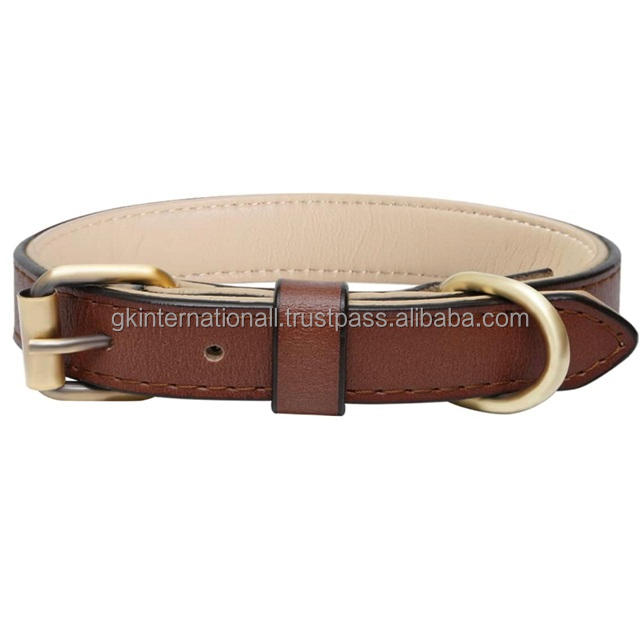 Comfortable Soft Padded Brown Premium Leather dog collar for Small Medium Large Breed dogs at best price
