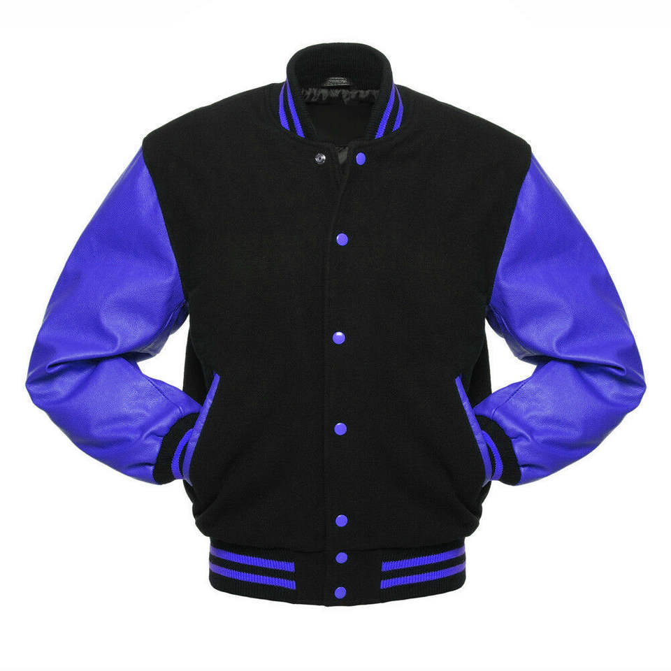 Comfortable Solid Customized Color Plus Size Winter Varsity Jacket Men High Quality Cotton Body Fleece Sleeves Front Logo