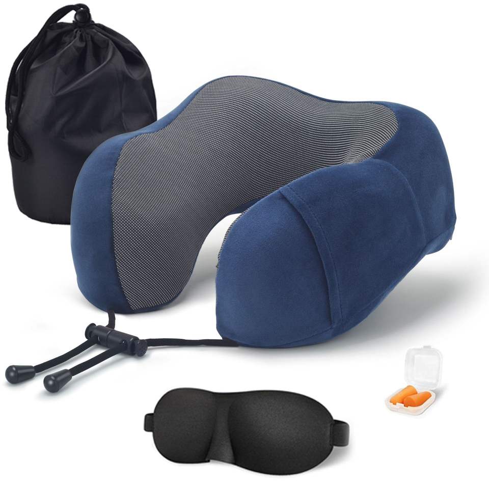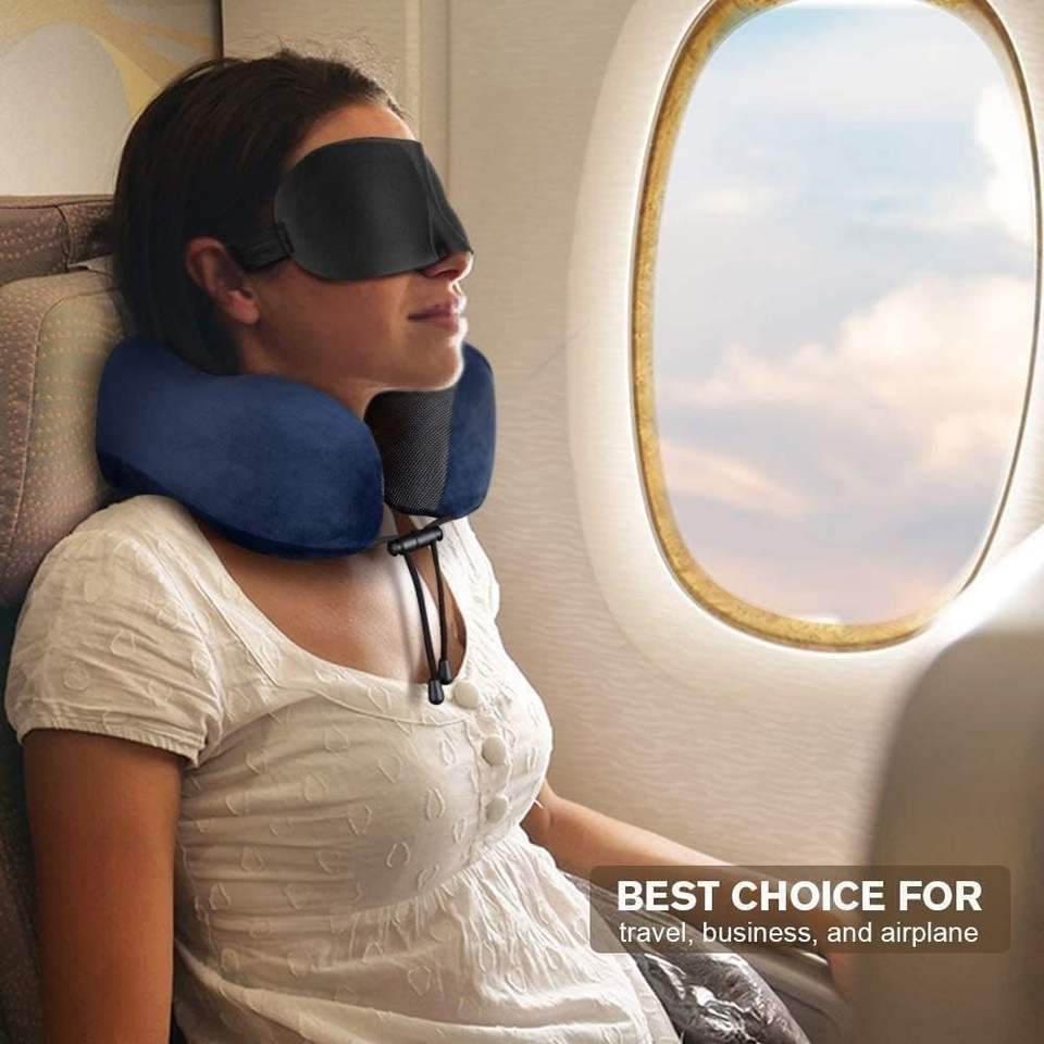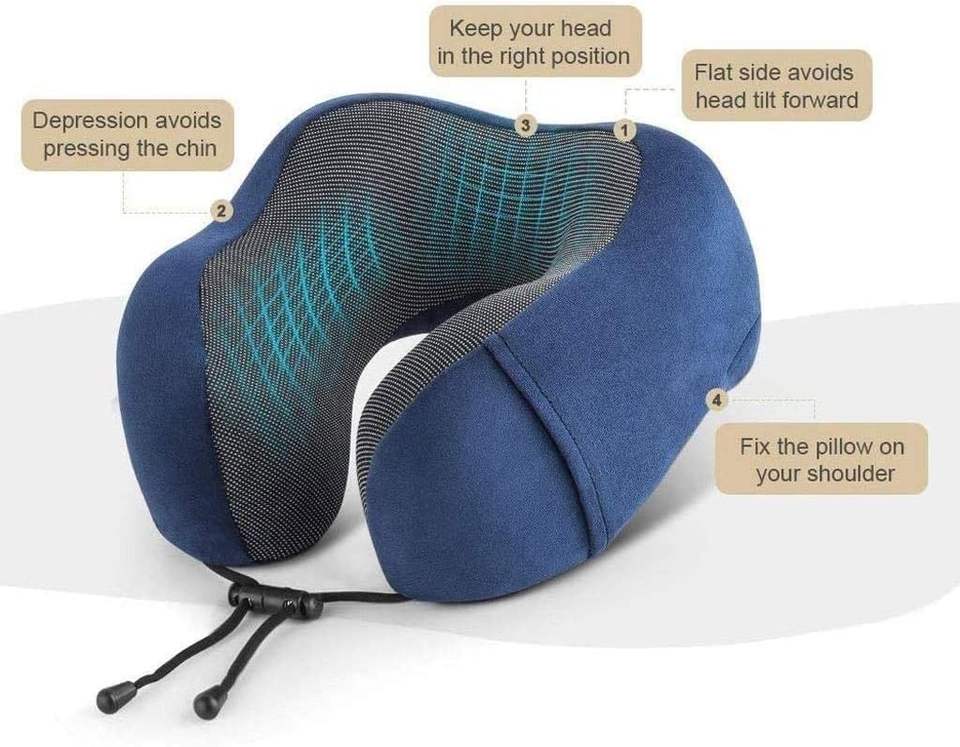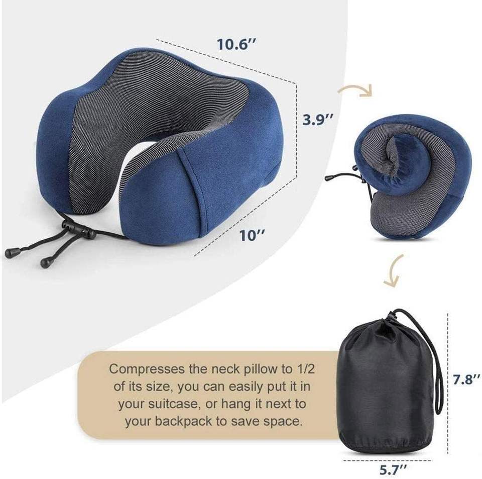 Comfortable Travel Pillow 100% Memory Foam Neck Pillow for Airplane Washable Velour Cover Ergonomic Neck Not Using Latex