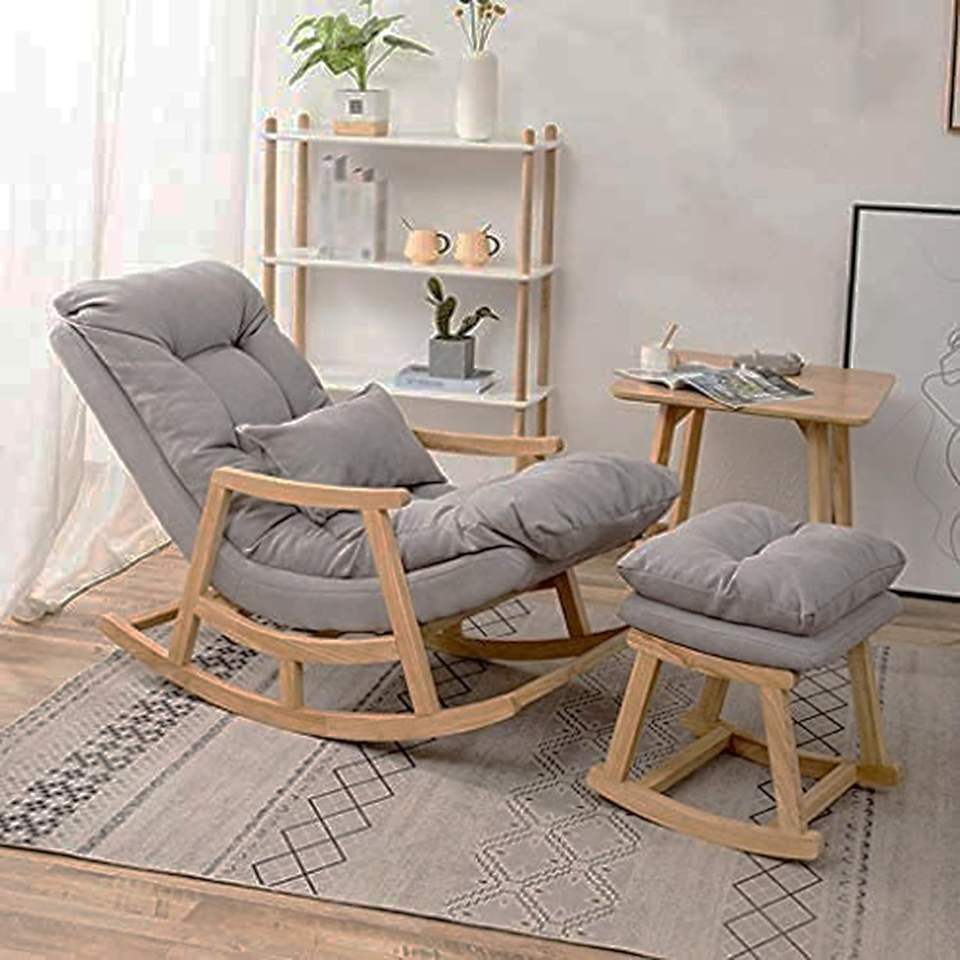 Comfortable Well Cushioned Rocking Chair with Footrest | Mid-Century Rocking Chair for All with Soft, Durable Cushioned