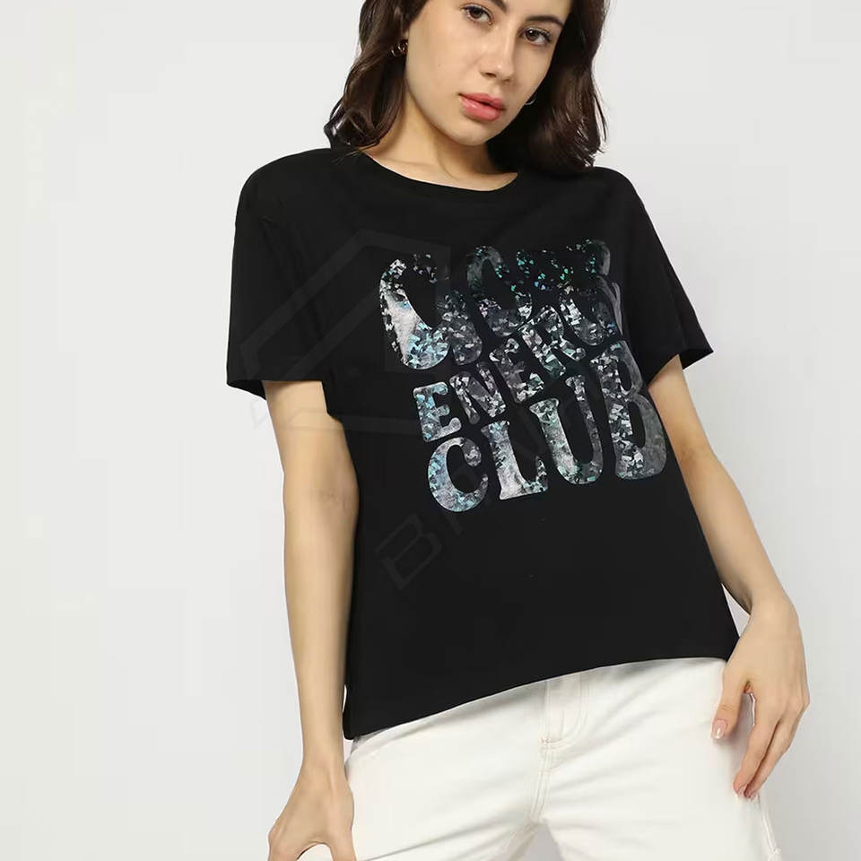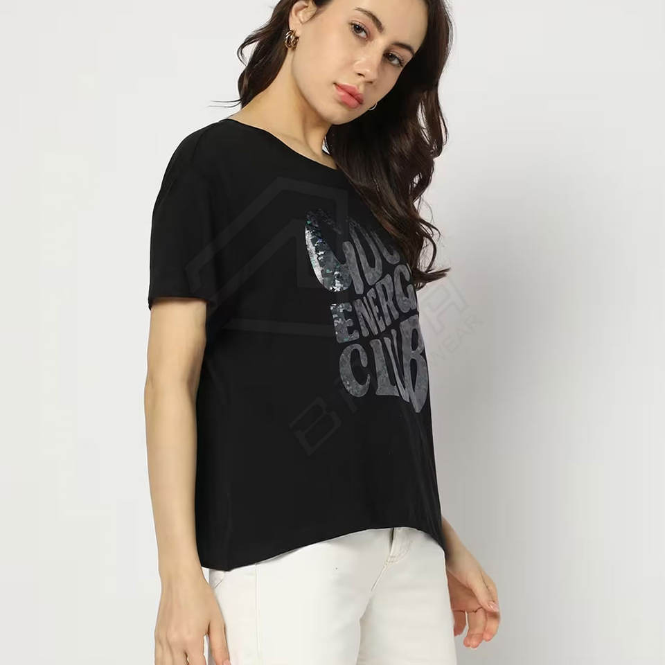 Comfortable Womens T-Shirts in Black Color With Half Sleeves With Custom Printed Girls T Shirts