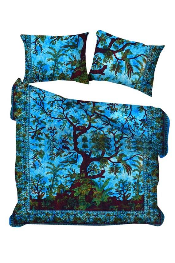 Comforter Handmade Queen Size Cotton Tree of Life Floral Duvet Cover Set Beautiful Multiple Colors Home Use By Indian Consigners
