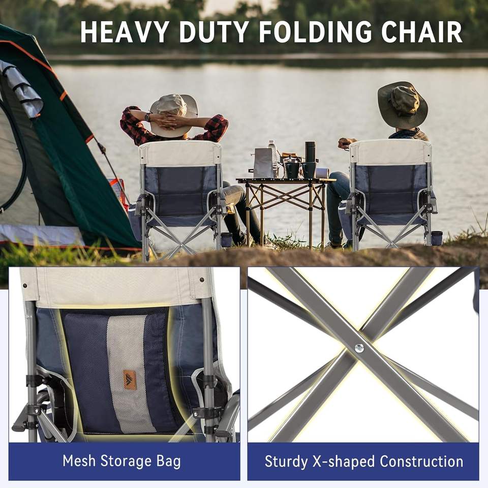 Comfy Heavy-Duty Camping Chairs for Adults with Lumbar Support Modern Design featuring Cooler Bag & Cup Holder