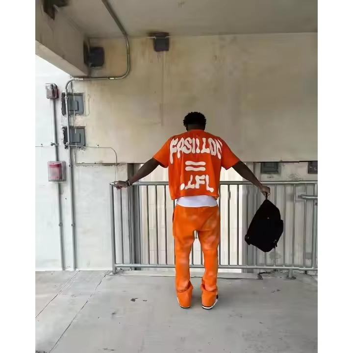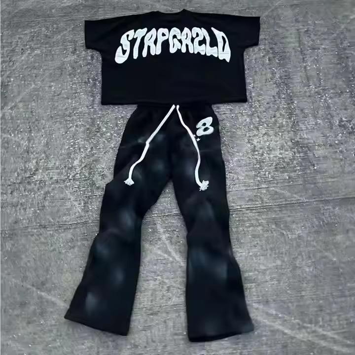 Comfy Two Piece Set Unisex Shirt With Joggers Vintage Acid Wash Printed Look