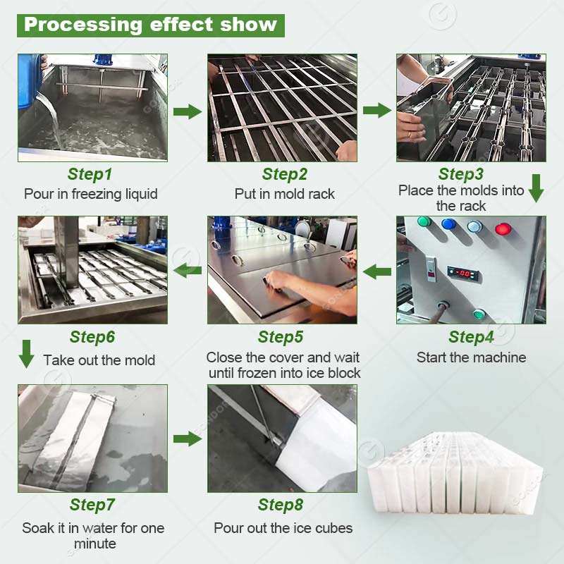 Commercial 1 Ton Cube Maker Guangzhou Clear Ice Block Machine 1000kg Storage Electric Motor & Bearing High Productivity