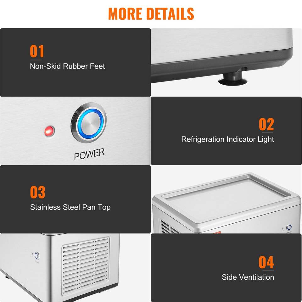 Commercial 19.3\" X 14.9\" Fried Ice Cream Roll Machine Stainless Steel Stir-Fried Ice Cream Pan 2 Scrapers Maker for Ice Cream