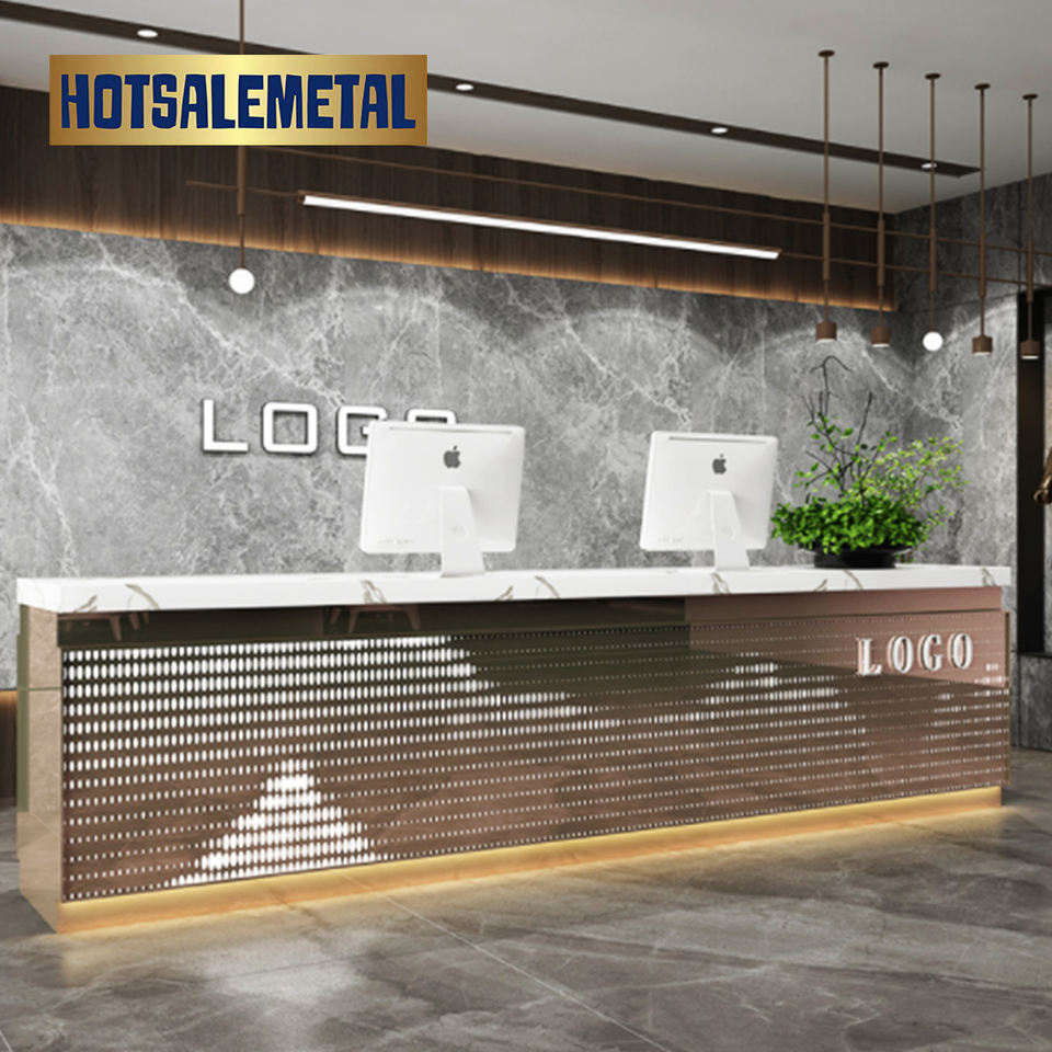 Commercial 201 304 Stainless Steel Water Ripple Pattern Reception Desk Mirror Polish High-end Front Desk
