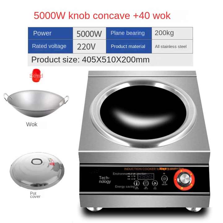 Commercial 5000 Watt High-Power Household Induction Cooker Concave Furnace Stove 5KW Fast Cooking Wok Burner Electric Dutch
