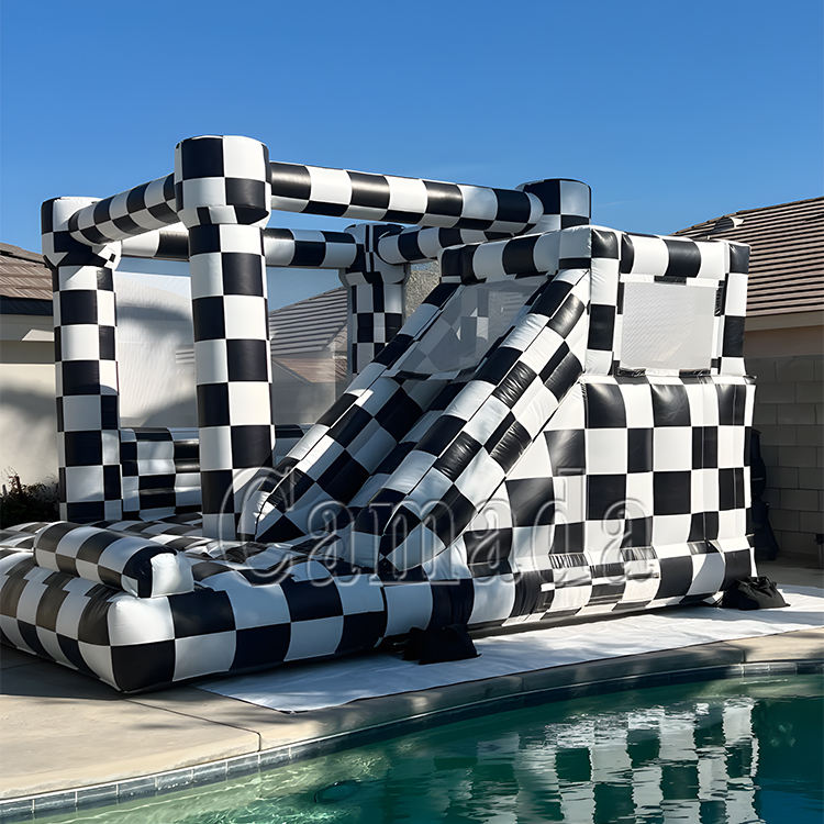 Commercial Black and White Grid Style Inflatable Combo Jumper Castle Slide Inflatable Castle Bounce House