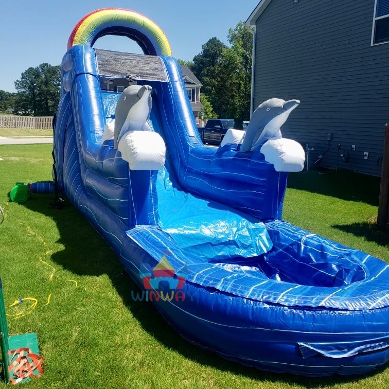 Commercial Blue Inflatable Water Slide with Rainbow Arch for Summer Fun, Durable Outdoor Water Play Equipment for Kids' Party