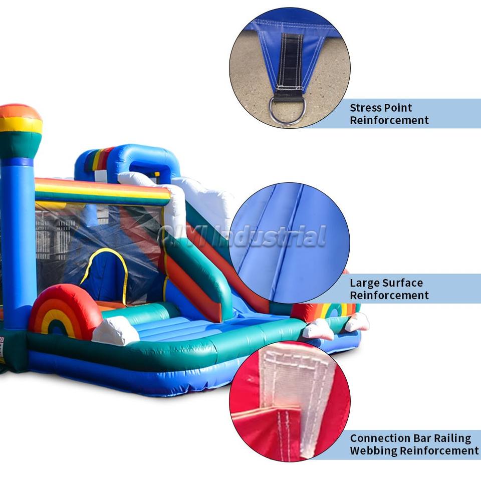 Commercial Bouncy House Party Rainbow Themed Inflatable Castle Bounce House with Slide Durable for Kids Outdoor Play